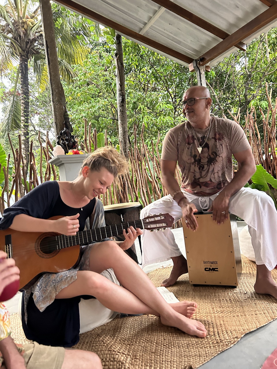 Kirtan is a devotional practice involving the chanting of sacred mantras, often accompanied by musical instruments such as harmonium, drums, and cymbals. Participants repeat these mantras, in call-and-response style, creating a deeply meditative and uplifting atmosphere. Kirtan have the power to purify the mind and awaken spiritual consciousness.
